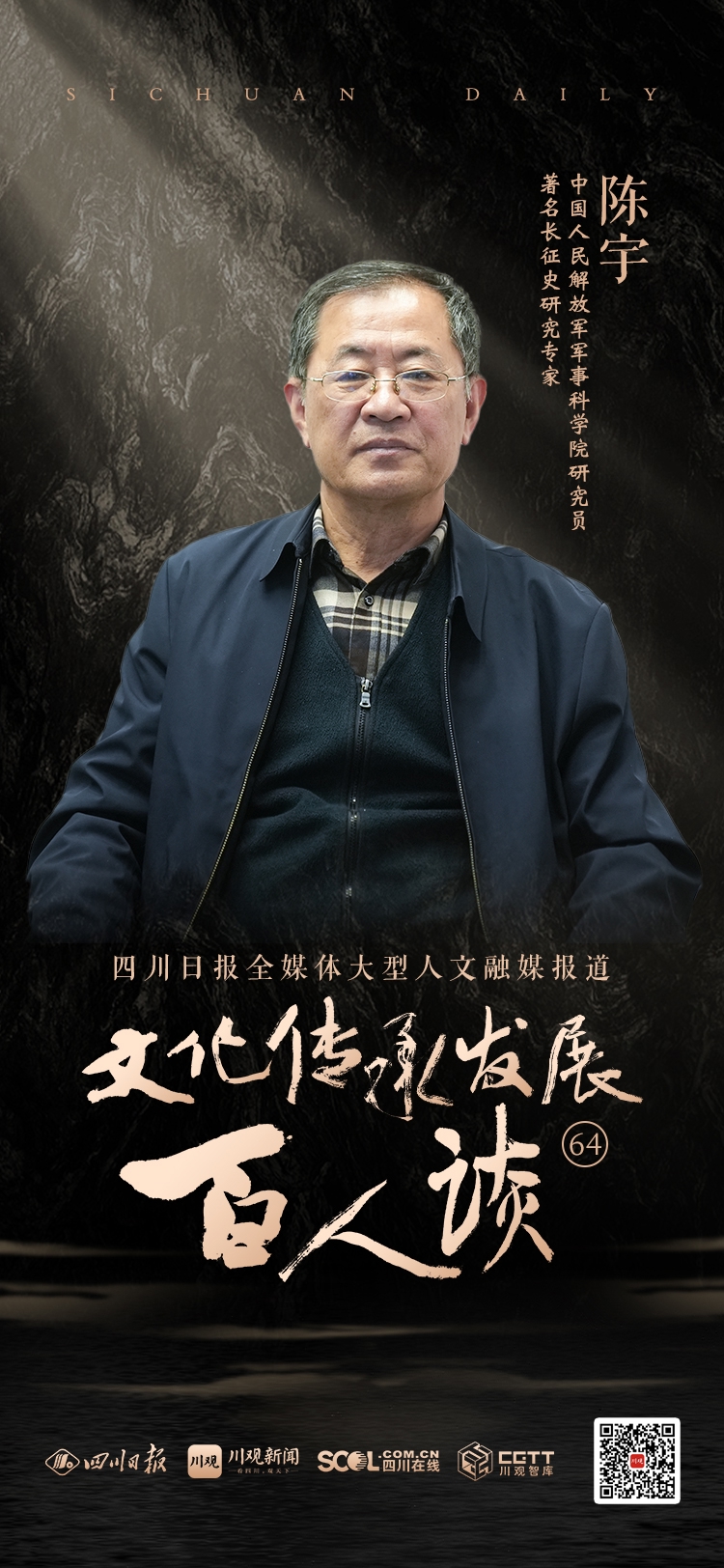 陈宇,著名军事历史学家,著名长征史研究专家,历史文化战略专家,中国人民解放军军事科学院研究员,北京大学特聘教授,长征国家文化公园顾问,四川长征精神数据库专家组组长。从军40余年,曾在连、团、师、大军区、军事科学院、中央军委办公厅等各级单位工作;解放军首届历史系本科毕业生,专职从事军战史研究30余年,曾任《军事历史》杂志主编等职。研究方向主要为战争史、军事思想、国家战略等领域,出版专著80余部。15次重走长征路,已出版研究红军长征的专著有:《长征精神论》《长征精神万岁》《草地龙虎》《血火江山》《谁最早口述长征》《长征:一部读不完的书》《红军长征年谱长编》《永远的红飘带》等。