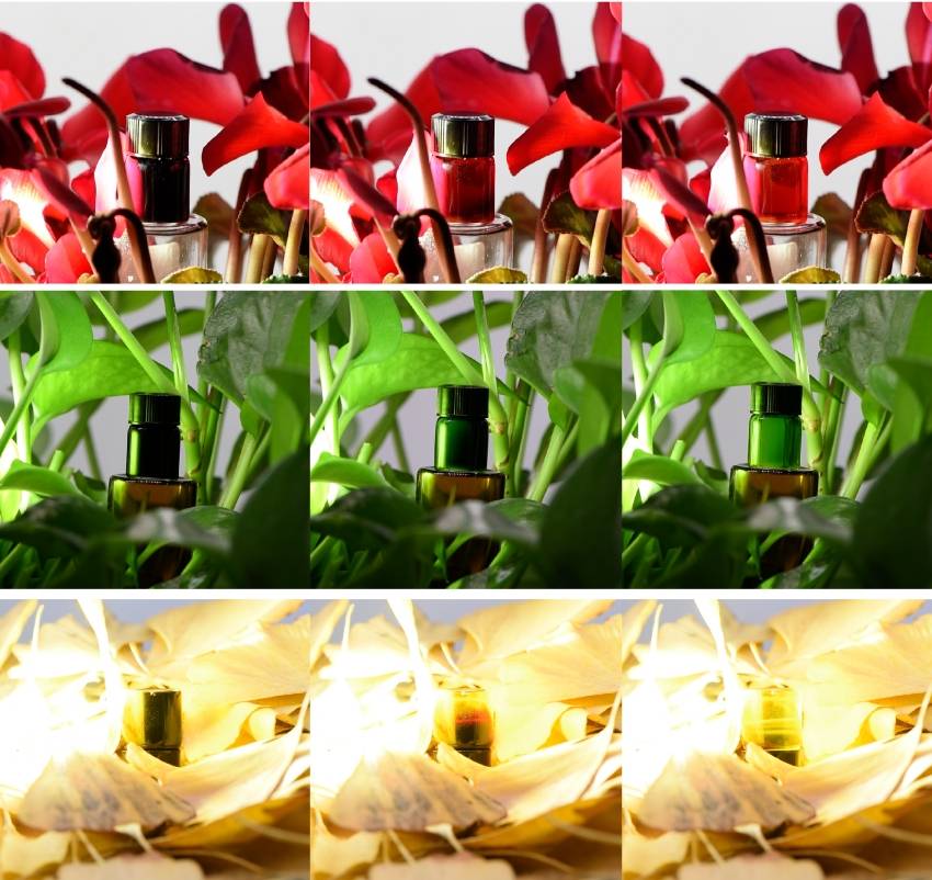 色彩之间有互补关系,例如紫色与绿色、蓝色与橙色等,混合在一起能形成黑色的组合色被称为互补色。在生活中,物体呈现的颜色,恰恰就是其反射的光的颜色。同时,物体还会强烈地吸收与自身颜色互补色光线。