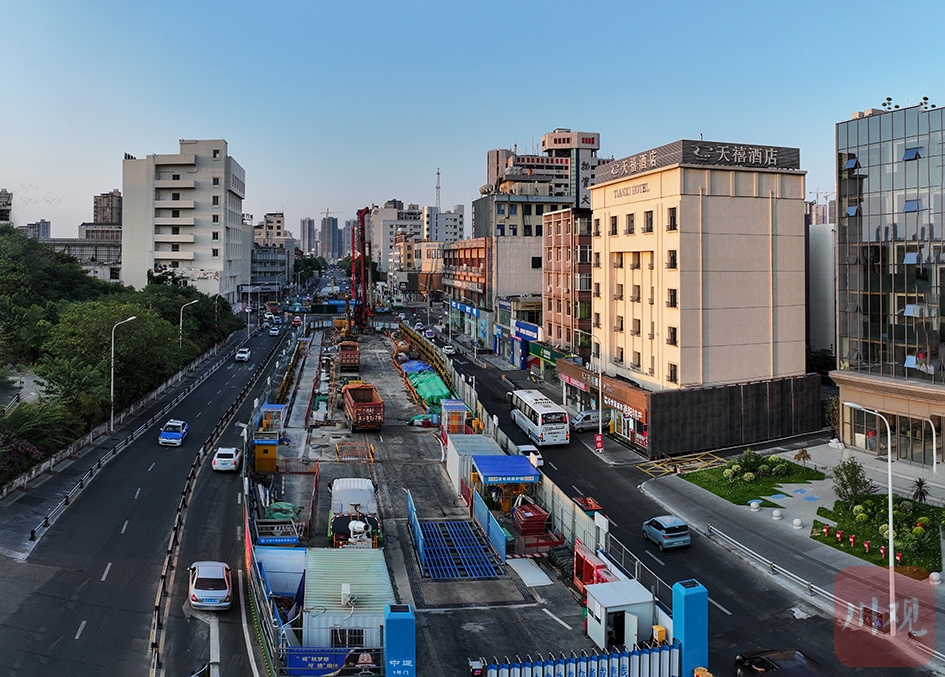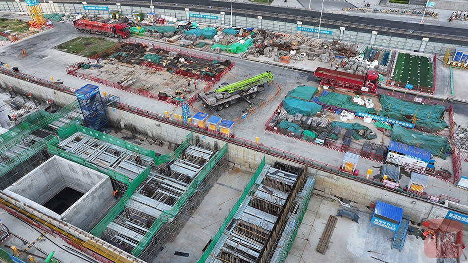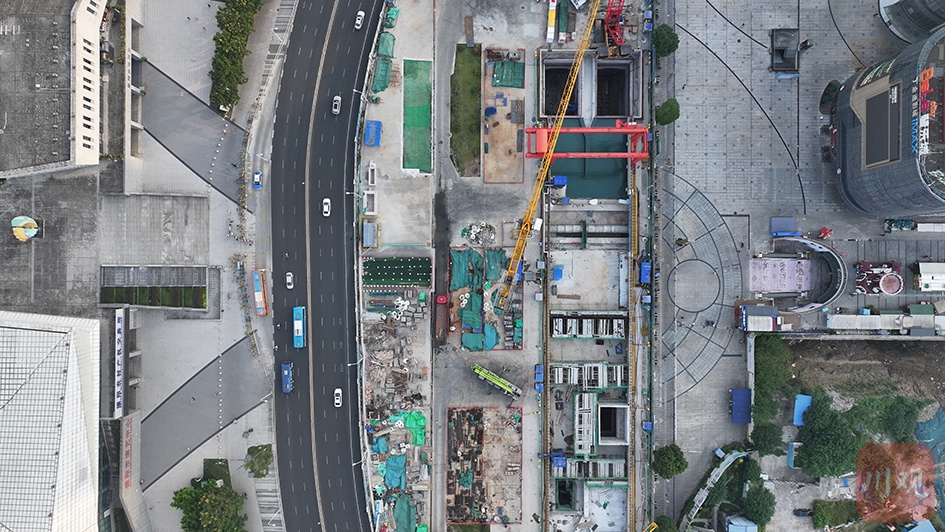 成都市域铁路S11线德阳段正加紧市区内各站点出入口的施工建设,建设者们争分夺秒,加快建设进度。
