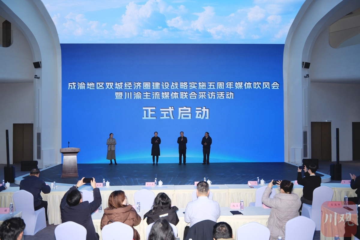 当天,川渝主流媒体联合采访活动正式启动。接下来,中央媒体、川渝两地主流媒体共21家新闻单位,将深入四川成都、眉山、德阳、广安以及重庆铜梁、永川、万州等地深入采访,呈现川渝两地共促产业科技发展、共同建设统一市场、协同推进对外开放、深化生态环境共治、推动社会共建共融等方面的有益经验、有效做法。