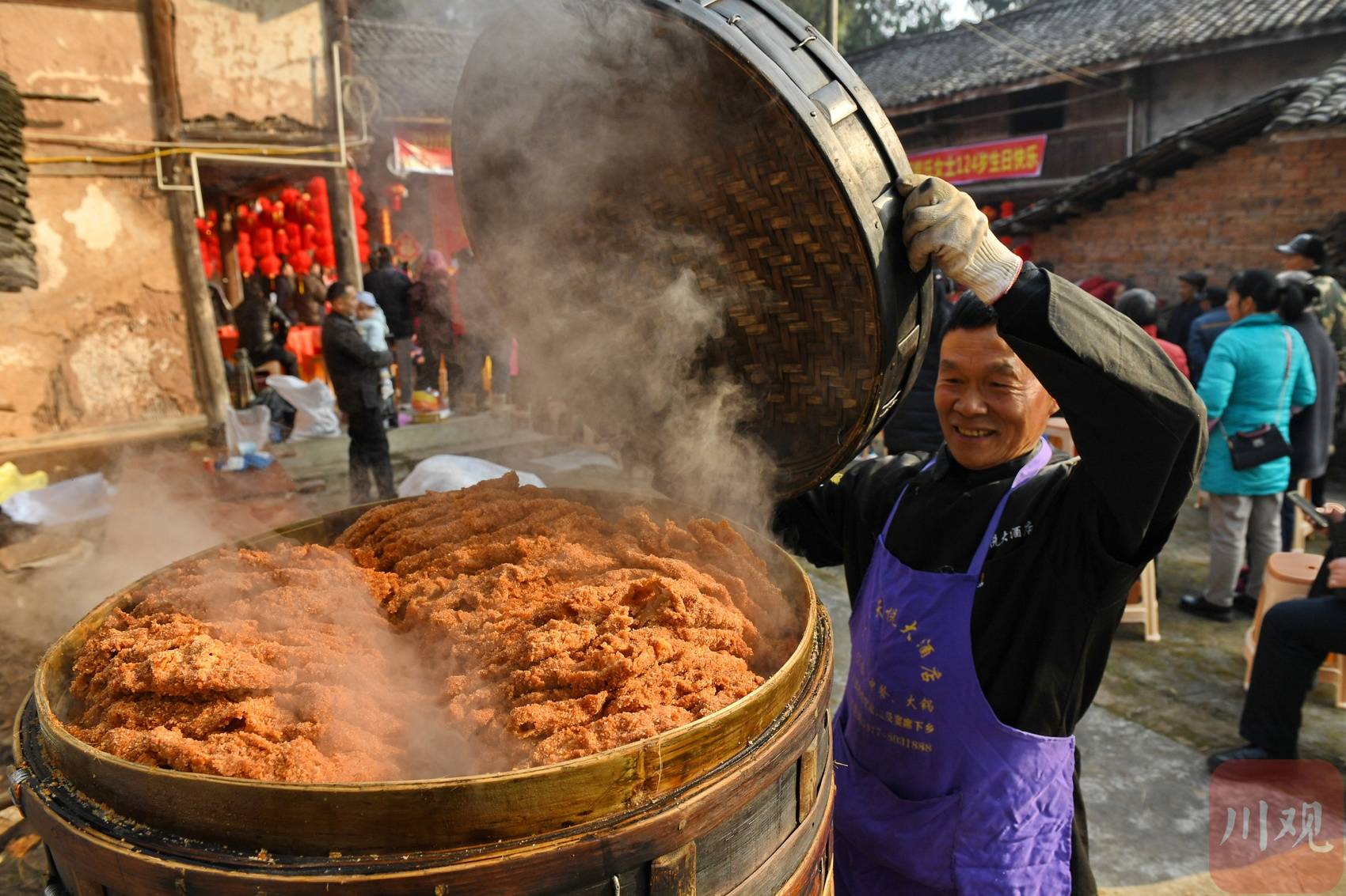 2024年12月31日,在四川省南充市南部县花罐镇柴氏祠村,厨师为邱柴氏老人过124岁生日做寿宴。