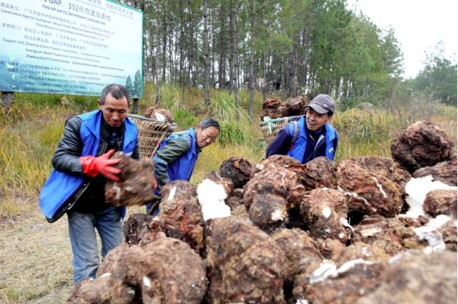 广元市昭化区元坝镇中梁村的昭化茯苓现代林业园区里,村民正在采收茯苓。广元观察 高志农 摄