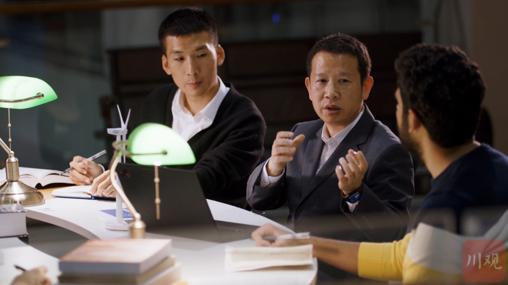 戴靠山与团队讨论。