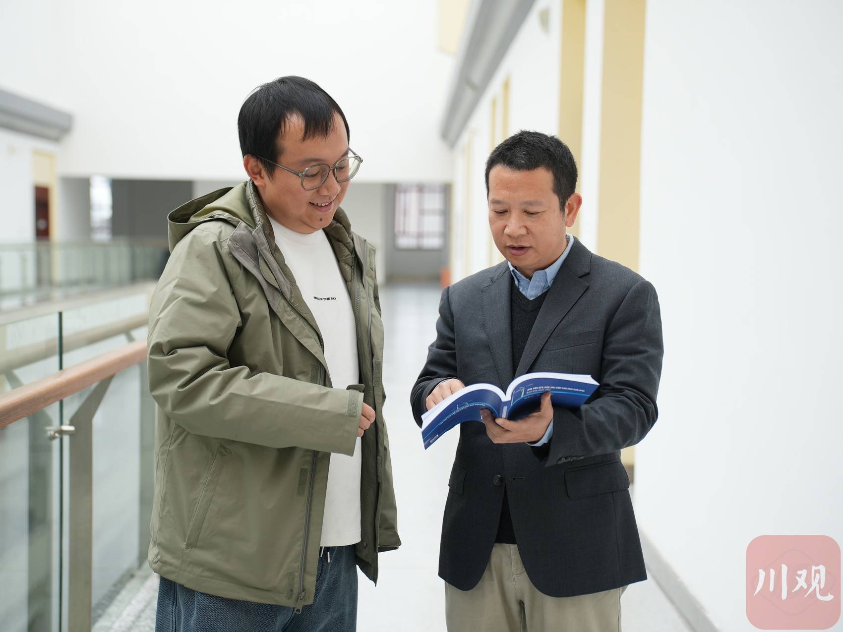 戴靠山与同事讨论问题。
