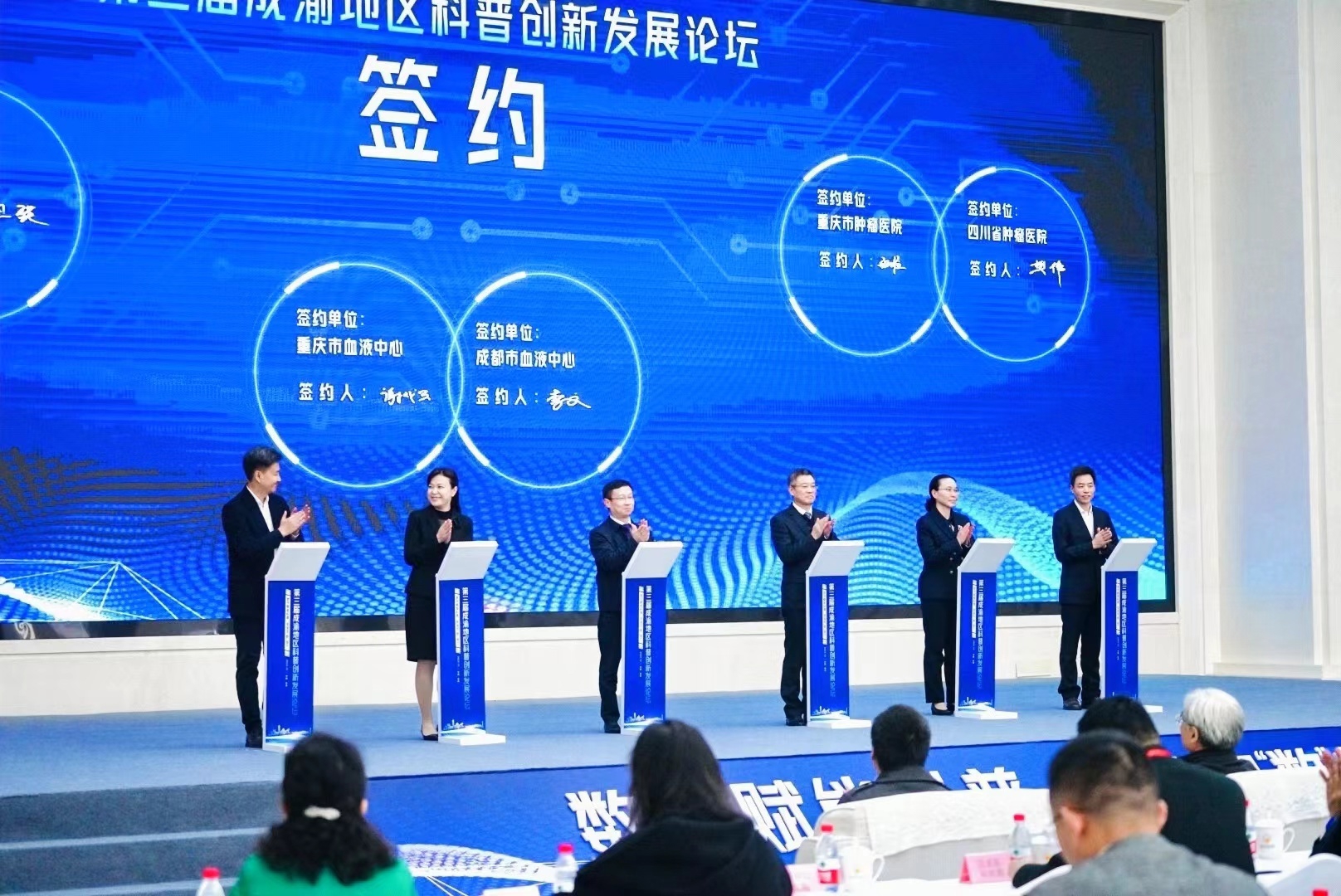 科普宣传方面,两地持续深化合作。2023年12月14日,第三届成渝地区科普创新发展论坛在重庆举行,共同探讨科技如何赋能科普教育。两地血液中心上榜“成渝共建科普基地”培育名单,签署协议共建无偿献血科普基地,推动两地科普资源的共享与互通,促进科普工作创新与发展。双方共同打造特色科普作品和温馨的科普服务,让无偿献血知识浸润大众心田。