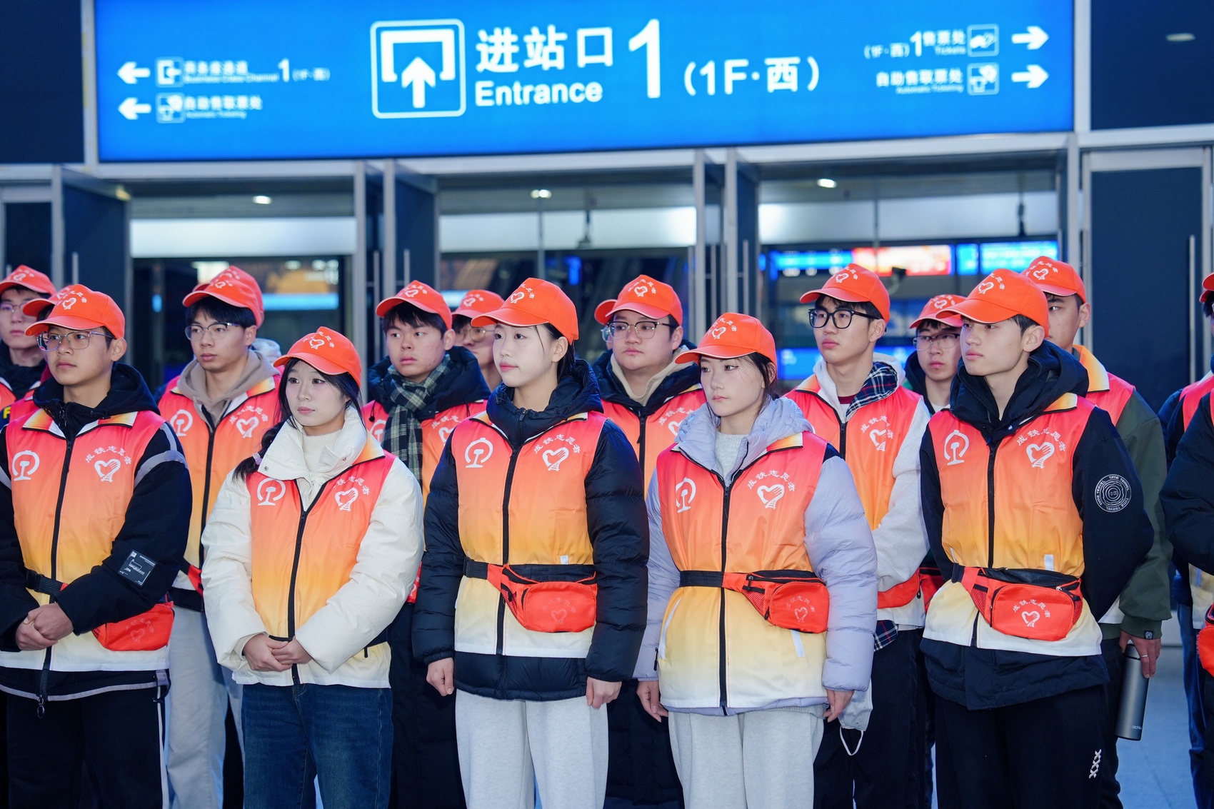 1月14日春运首日,由团省委联合交通运输厅、国铁成都局共同举办的“2025年四川省青年志愿者服务春运暖冬行动首日集中培训上岗暨志愿者慰问工作座谈会”在成都东站举行,近百名志愿者完成岗前培训,志愿者代表进行集体宣誓。