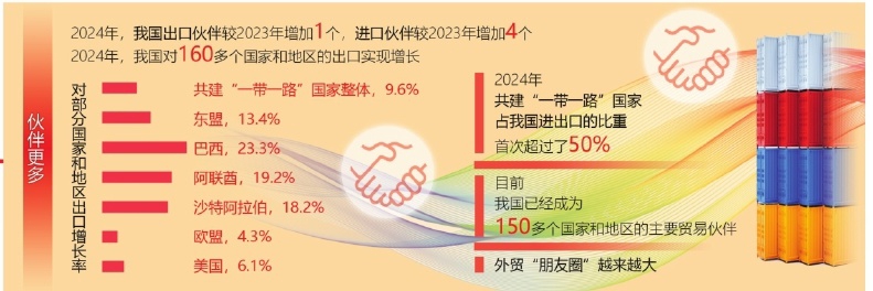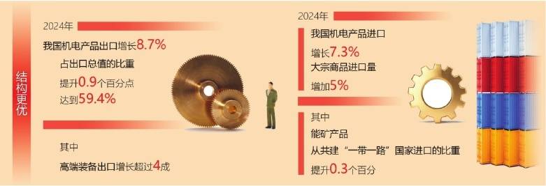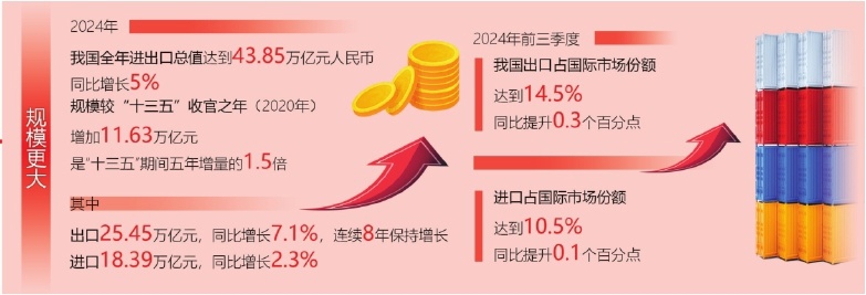此外,自由贸易试验区有效发挥改革开放综合试验平台作用,合计进出口8.45万亿元,增长10.3%;海南自由贸易港建设稳步推进,全年进出口2776.5亿元,增长20%……一组组数据,正持续彰显外贸韧性。2025年,期待外贸再启新程、再创佳绩。