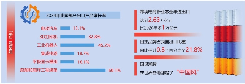 二是数字贸易蓬勃发展。数据显示,2024年,我国跨境电商进出口2.63万亿元,增长10.8%。跨境电商在“卖全球”方面潜力进一步释放,同时在“买全球”方面的优势也在持续发挥。