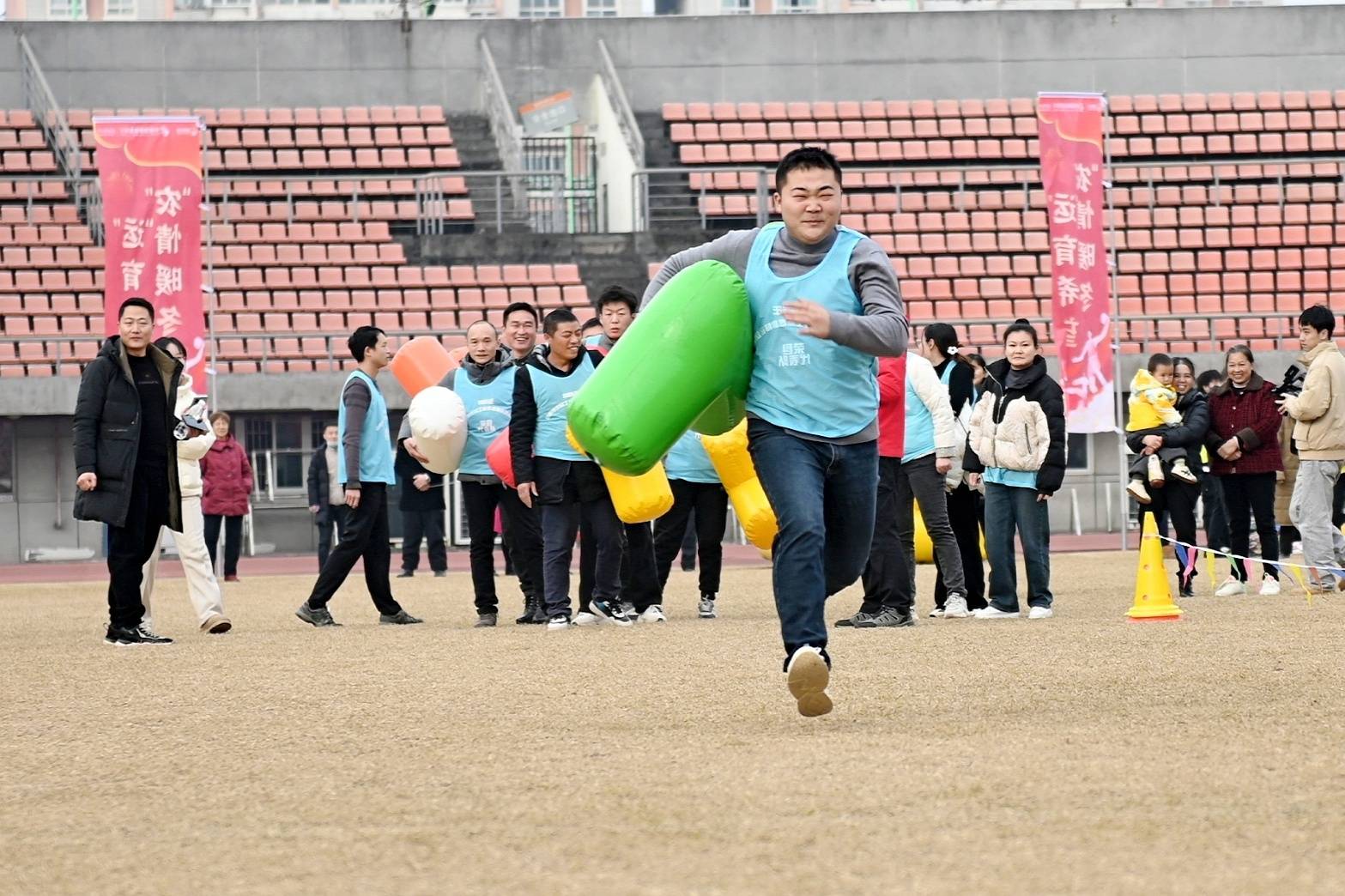 “加油!加油……跑快些……”1月15日下午,在自贡市南湖体育文化中心,2025年自贡市农民工新春趣味运动会正在热闹举行。场上,选手们奋力拼搏勇争第一,场下观众呐喊声夹杂着欢笑声,现场成了一片欢乐的海洋。