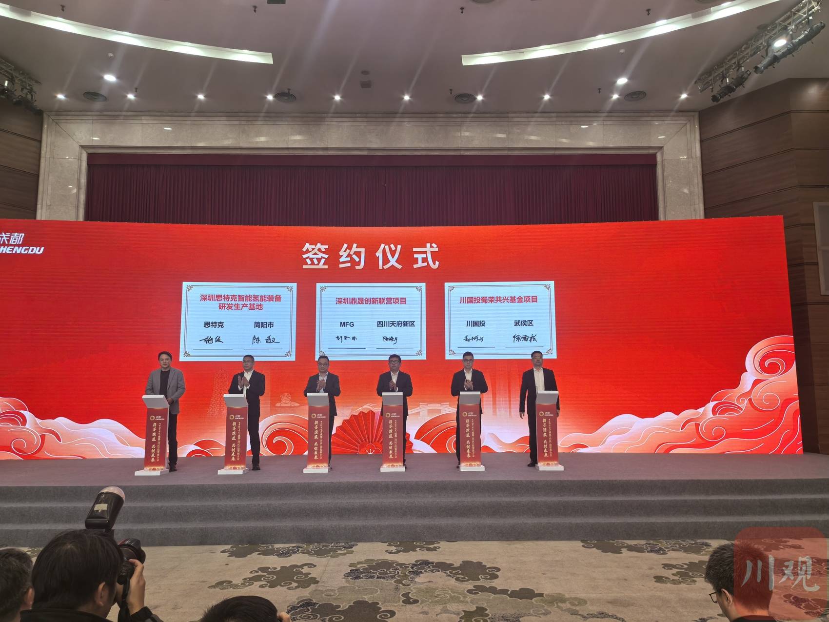 1月16日,2025成都(湾区)投资促进活动也在深圳举行,吸引40位川籍企业家,12家投资及金融机构、96家大湾区重点企业参加。活动中,四川天府新区、成华区、彭州市等区(市)县签约正成星网卫星互联网研发智造总部基地、深圳千巡科技巡检机器人研发制造基地、深圳鼎晟创新联营项目等38个重大产业化项目、投资总额265.72亿元。