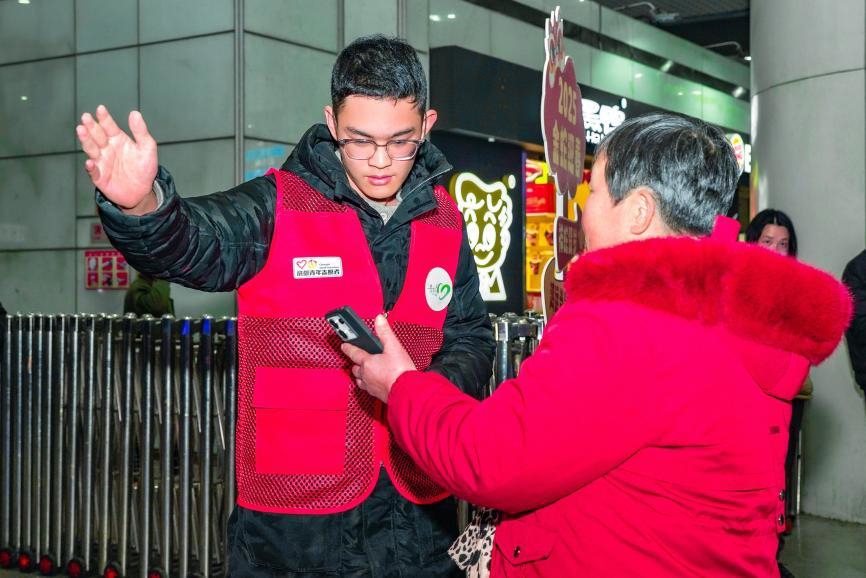 在成都东站、成都南站、茶店子客运站等重要交通枢纽,“小青椒”志愿者们在进出站口、自助售票机、爱心服务站等岗位,为广大旅客提供道路指引、购票协助、秩序维护、信息咨询等便民服务。遇上行动不便、带老人和小孩等需要帮助的旅客,志愿者也会主动上前,为旅客提供行李转运等暖心服务,让旅客提前感受回家的温暖。