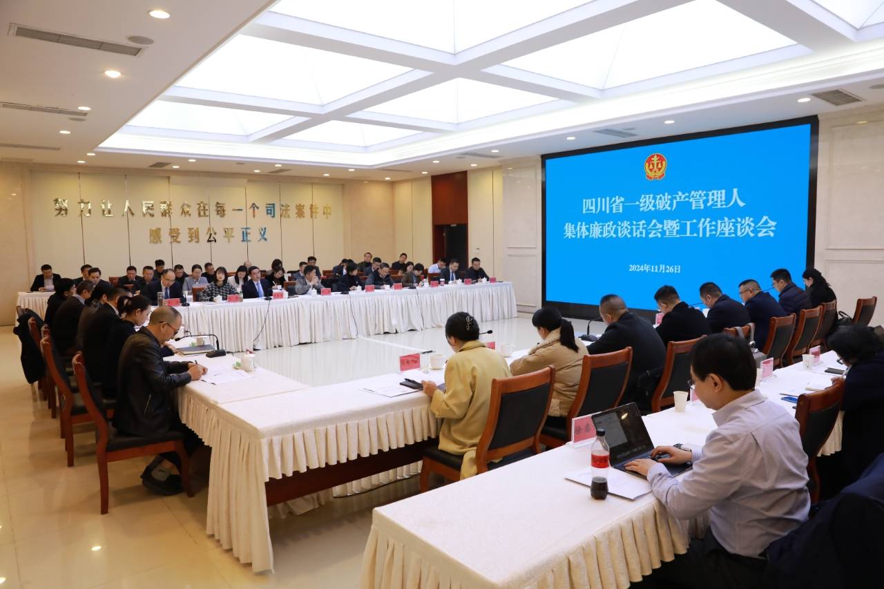 省法院召开四川省一级破产管理人集体廉政谈话会暨工作座谈会。省法院供图