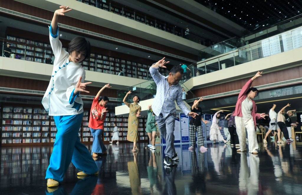 市民在省图书馆举办的“养生吧青年”活动中体验中医养生功法。 省中医药局供图