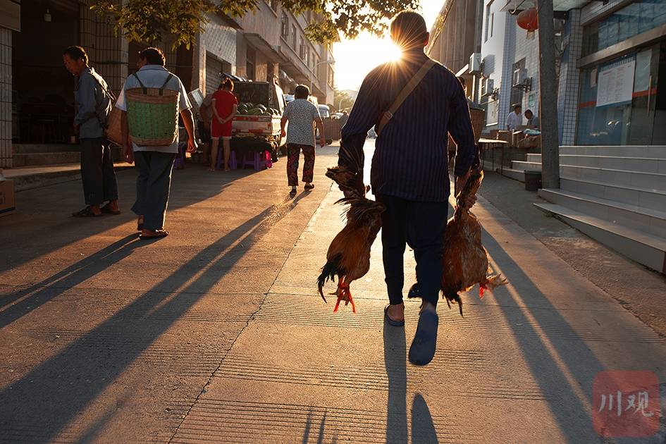 《夕阳下,拎鸡的浪漫‘漫步’》