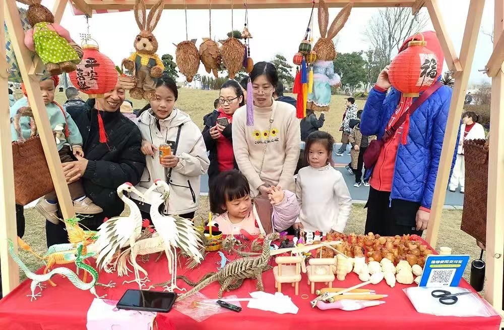 除了“硬核”的航天科技展览,安“驿”潮玩新春游园会还带来众多传统文化体验。在东安堤一带,传统非遗项目一一亮相,剪纸艺人手中的剪刀如灵动画笔,纸屑纷飞间,一幅幅精美的蛇年剪纸作品便呈现在眼前;糖画摊前,糖浆在艺人飞舞的小勺下,逐渐生成栩栩如生的动物造型,引得孩子们驻足围观。