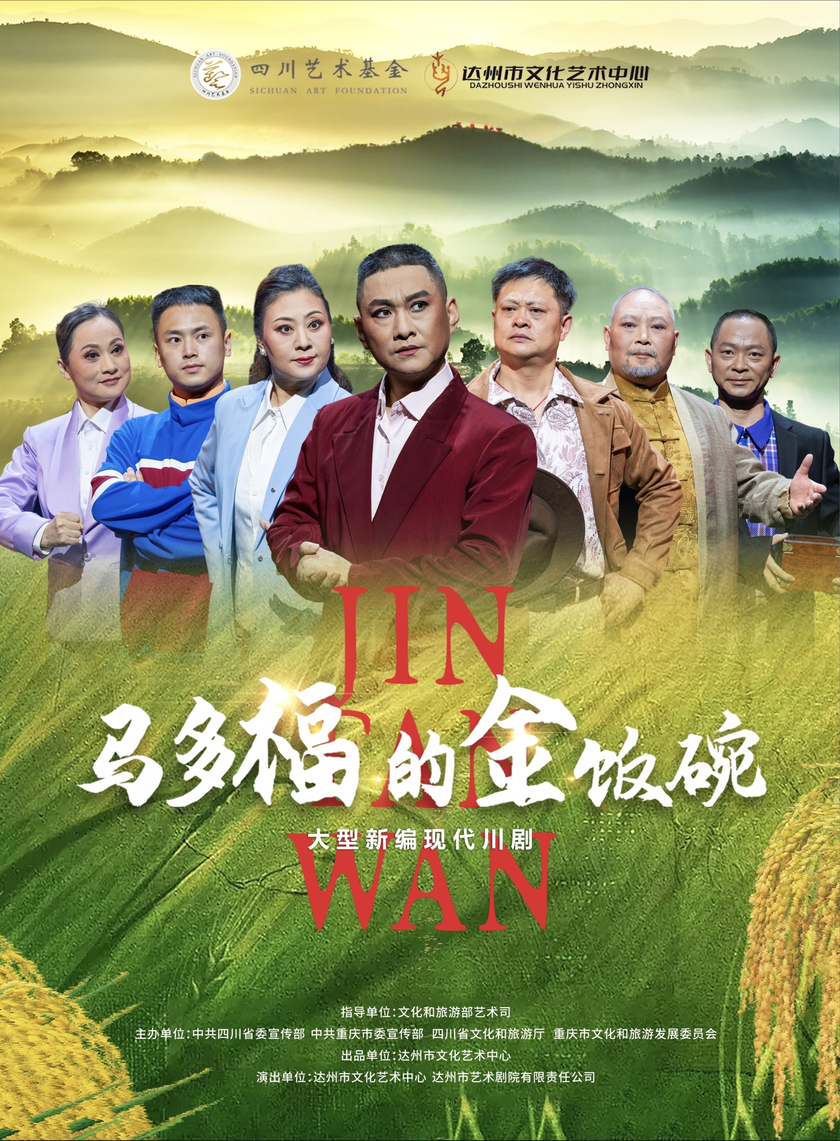 现代川剧《马多福的金饭碗》以粮食为切入口,讲述了马多福、马伟华、王兰香、马锦言为继承马大山的财产和那只“金饭碗”,决心回到老家去种一季稻谷,在惊蛰犁田、谷雨插秧、夏至补水施肥、大暑防洪护苗、秋分收获中,几人闹出各种让人啼笑皆非的笑话,最终克服种种困难,终于将一碗白米饭端上了桌。该剧情节曲折生动,人物性格鲜明,旨在通过川剧艺术表演,引导人们关注当下粮食安全、粮食浪费问题,呼吁人们勤俭节约、珍惜粮食,用自己的行动去守护今天来之不易的“金饭碗”。