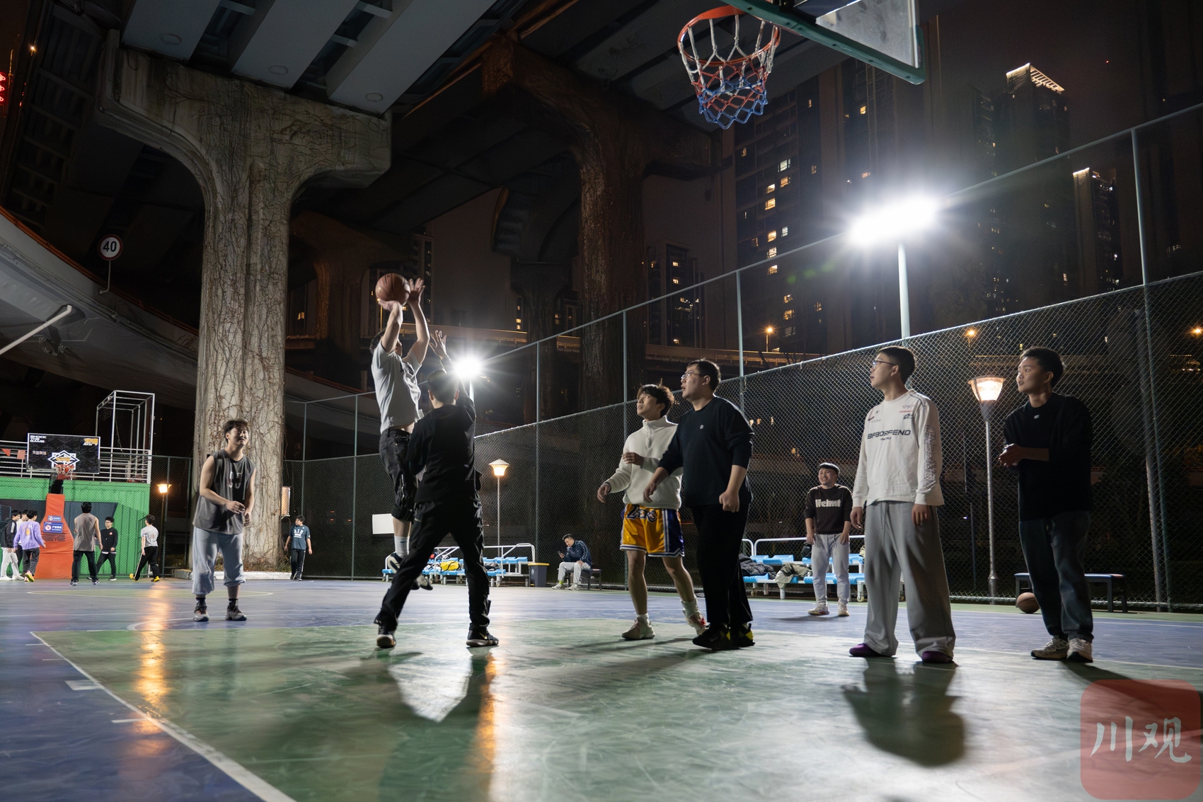 2月5日,成都市民在篮球场打篮球,该球场利用高架桥下空间打造,是当地居民运动健身的热门地。