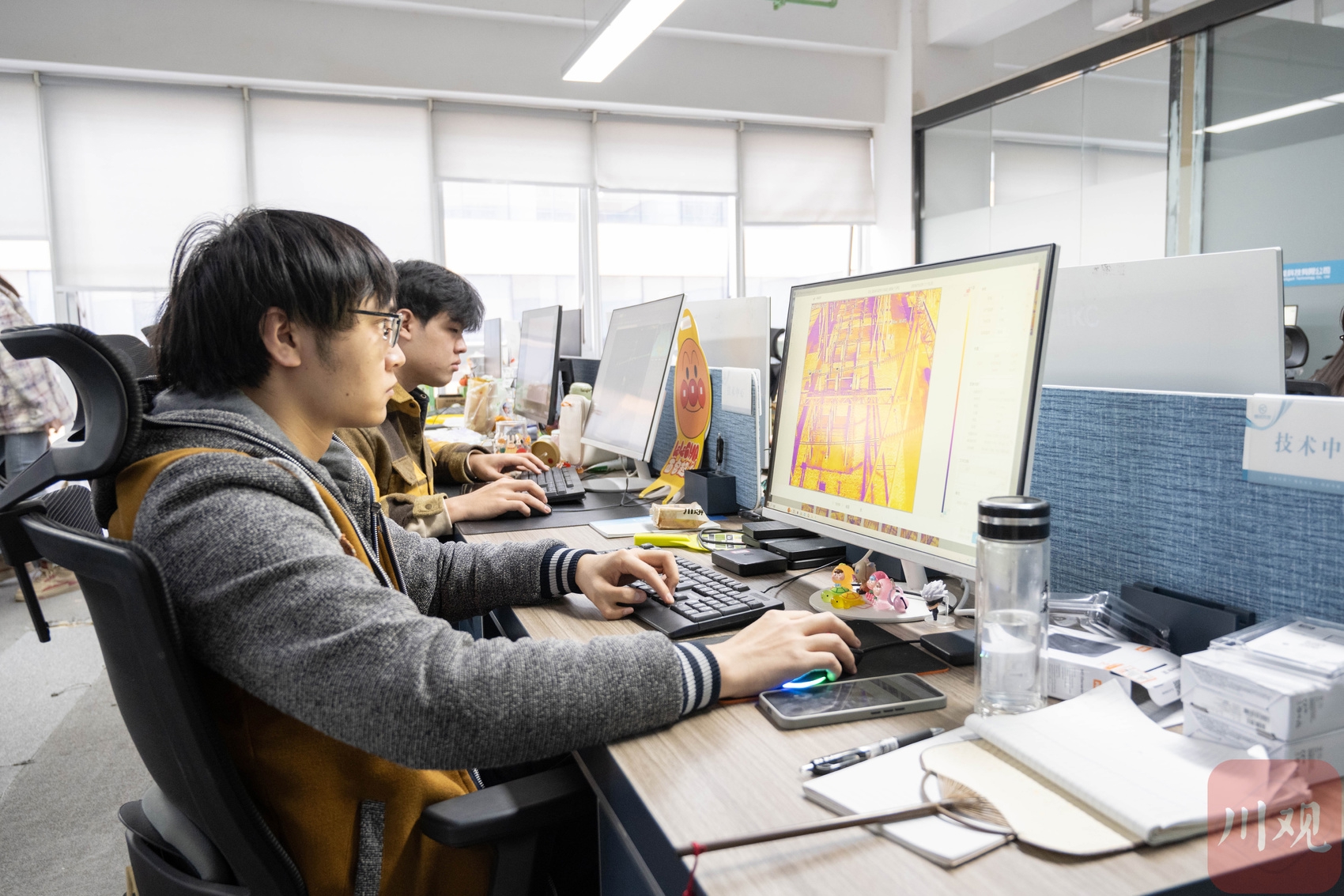 2月5日,设计人员在位于成都高新区的办公楼内制作设计图。