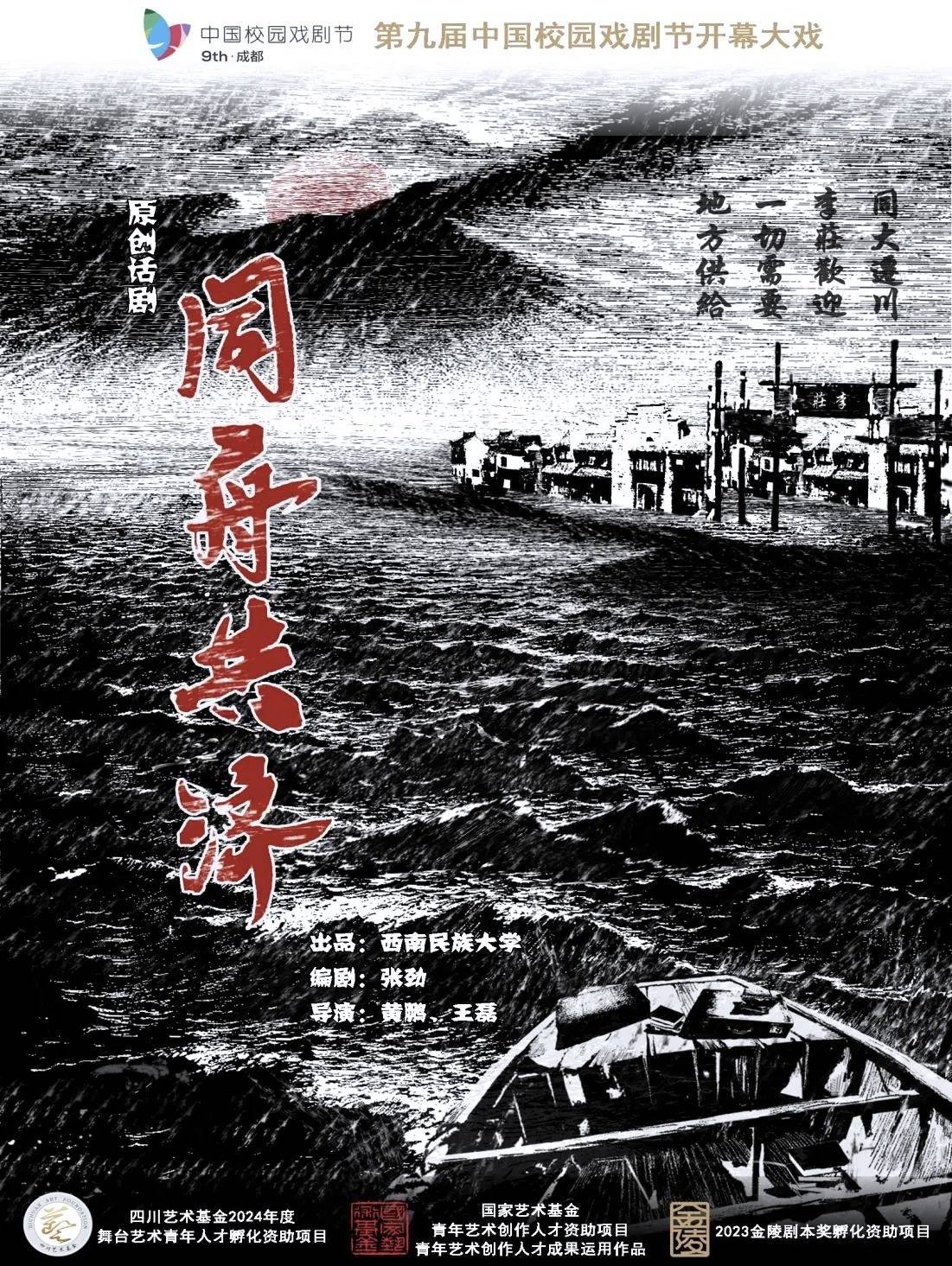 话剧《同舟共济》由西南民族大学承担实施,讲述了抗日战争初期,同济大学为躲避战乱,几经辗转,最终向地处西南、长江之畔的宜宾李庄镇发文试探,得到掷地有声的回电:“同大迁川,李庄欢迎,一切需要,地方供给。”在危难关头,两者手牵手、心连心,携手度过那段刻骨铭心的抗战岁月。该剧通过两条叙事线索展开,一方面讲述了李庄孤儿刘继宗的成长故事,另一方面展现了同济大学师生在李庄的艰难岁月和与当地人民的深厚情感。该剧演员的精彩表演将角色的情感深度和历史背景融合,人物刻画生动。