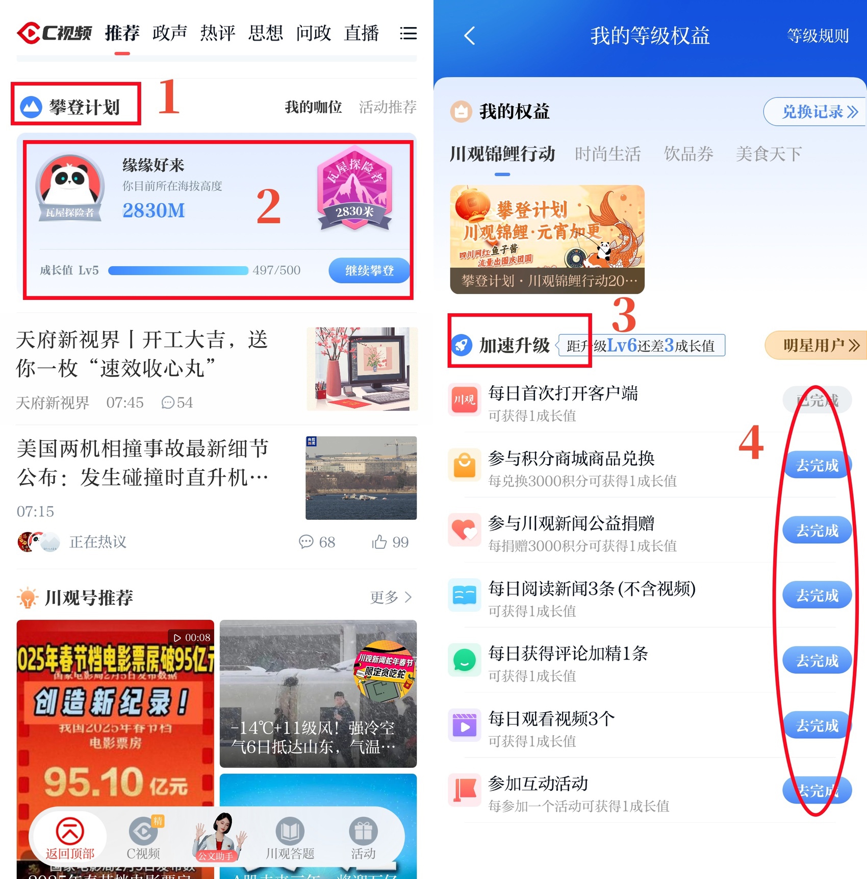 2、在川观新闻首页,点击“攀登计划”—“我的权益”,找到“攀登计划·川观锦鲤行动元宵加更”活动图片,根据提示参与抽奖。
