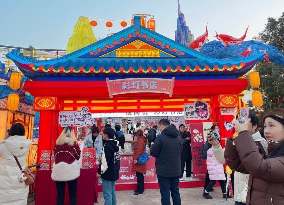 “情绪价值”成为关键词。当天下午,记者在成都双楠伊藤洋华堂的快闪店看到,原本仅有的两个展台因产品供不应求,紧急扩容至四个。店员透露,销量最高的并非书籍,而是印着“开心就好”“佛系青年”等网络热梗的文创周边。“这些产品像是一种身份标签,让年轻人通过消费完成自我表达。”快闪店相关负责人如是说。而在自贡灯会的“夜阅读·彩灯书店”内,来自西安的游客王沁的体验颇具代表性:“灯会震撼,书店治愈,这种反差感反而让人更愿意停留。”