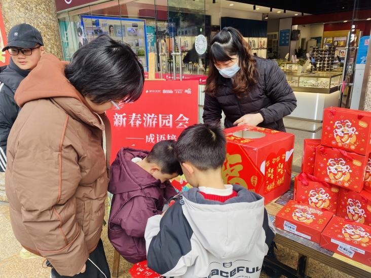 大年初一上午,记者走进德阳购书中心,这里已热闹非凡。一座红色展台上,“新春游园成语接龙”的标语格外醒目。带着孩子的家长、结伴而行的年轻人,甚至路过的游客纷纷驻足,用“龙腾虎跃”“虎踞龙盘”等成语接龙换取小礼品。朗朗的诵读声与欢笑声交织,让书店瞬间成为街头最热闹的角落。“原本只是来买书,没想到还能参与这么有趣的活动,孩子玩得开心,我们也感受到传统文化的魅力。”来自德阳市旌阳区的年轻爸爸胡昕维赞不绝口。