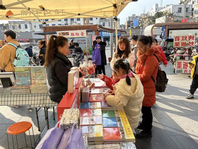 这种“文化场景叠加”效应在德阳文庙广场尤为显著。此前记者曾在紧邻庙会的世纪书城看到,书城将图书展台延伸到户外,历史典籍、儿童绘本、畅销小说在红灯笼下铺开,形成独特的“书香庙会”。70岁老人张则海对记者感叹道:“逛庙会吃糖画是童年记忆,现在带着孙子边逛边买书,感觉年味更厚重了。”另据了解,在雅安西康庙会,雅安书城的展位意外成为焦点,身为一个初三学生的母亲,48岁的宋倩倩更希望孩子不要只用“耍”来蹉跎大好时光,她直言:“庙会喧闹中有这样一方安静选书、买书、看书的角落,对家里的学生而言更有意义。”