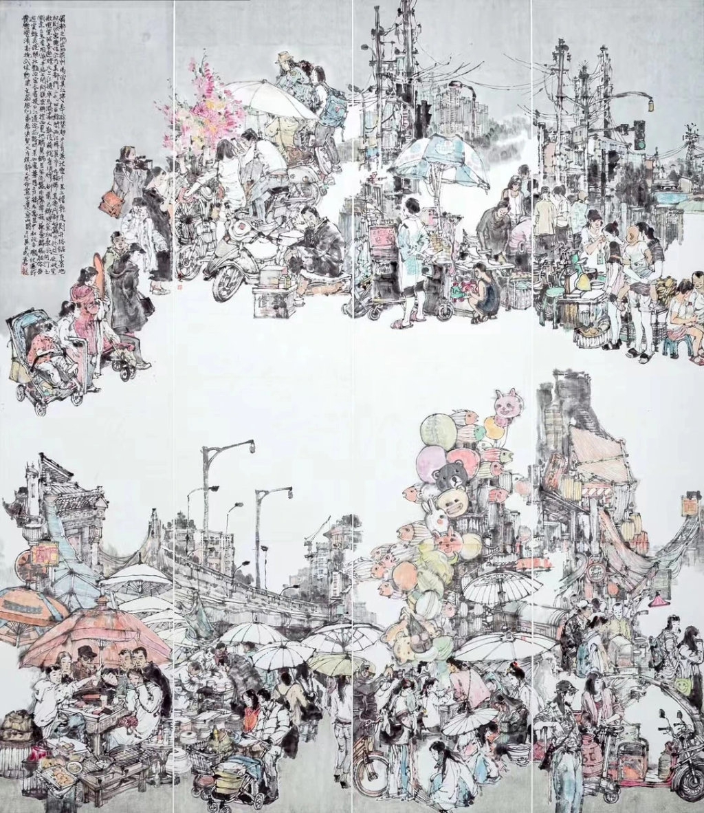 再来成都的街头走一走(中国画),尺寸:210cm×180cm,钱磊 作