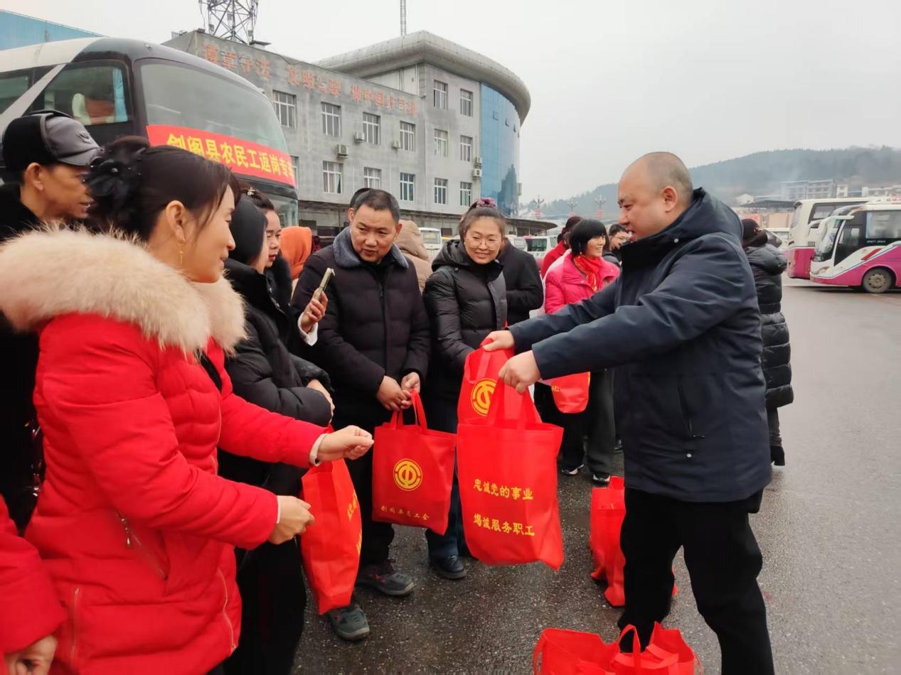 广元市各地为每位乘坐专车的农民工准备了返岗“新春大礼包”。剑阁县委宣传部 供图