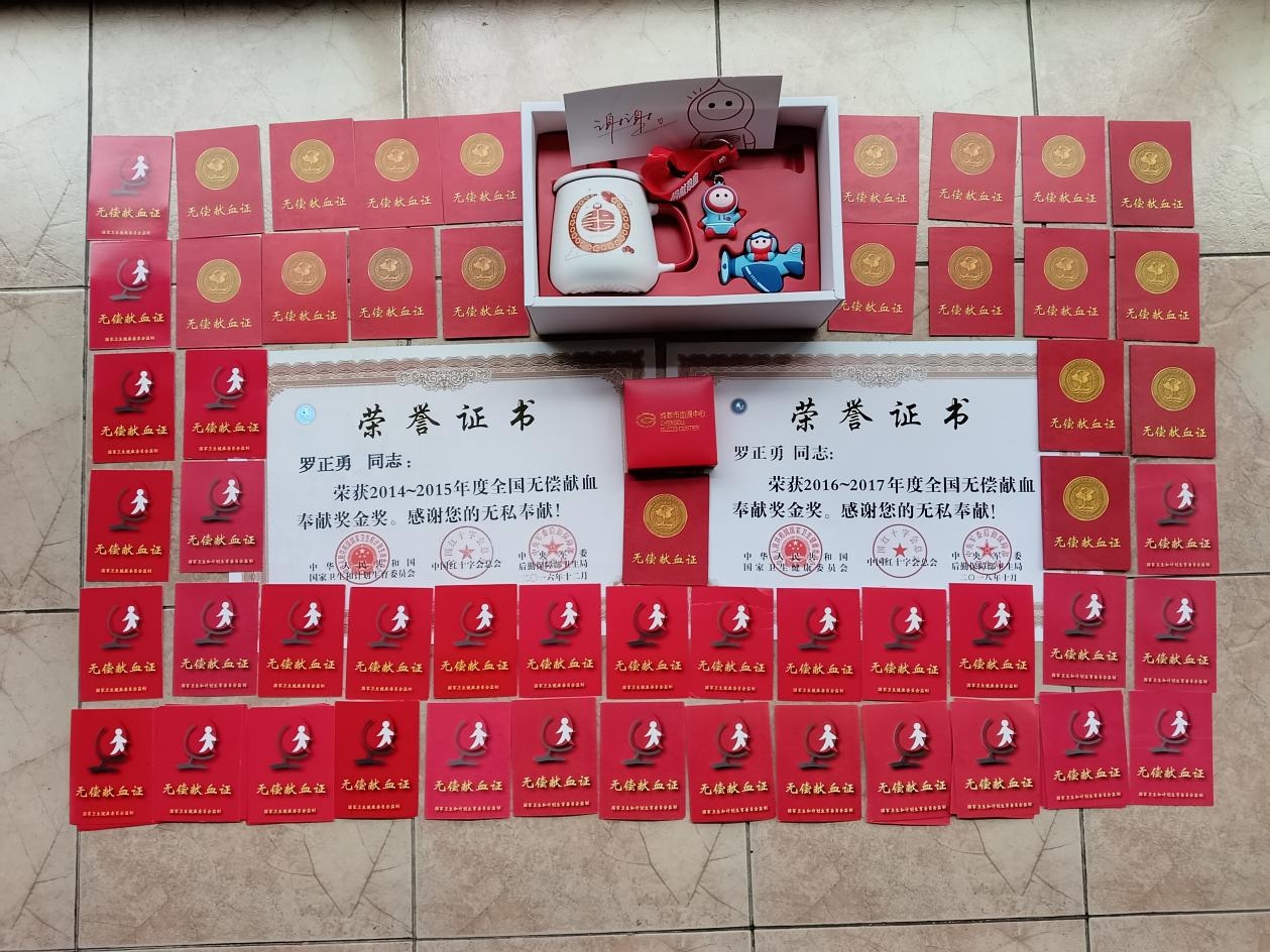 2月4日,是罗正勇61岁的生日。前一天,他收到一份生日礼物——一张献血证。“这是我最后一次献血。”罗正勇还参与成都市血液中心为献血者打造的专属“蛇舞新春喜游园”活动,领取到了新春款纪念品和新年糖果。家里的电视柜,摆满各式各样的献血纪念品,另存了100多张献血证。