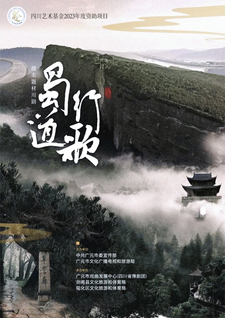 现实题材川剧《蜀道行歌》由广元市戏曲发展中心(四川省豫剧团)创作演出。该剧以一名当代年轻文物工作者的视角展开,讲述他通过重走古蜀道,了解文物保护工作的重要意义,体会蜀道精神内涵的实质,找到自己未来前进道路的故事。展现当代文物工作者在广元这座“人与自然和谐共生之城”的保护和传承,深层次表现对历史、文化、文物的敬畏与保护。该剧舞美设计独具匠心,音乐创作优美、婉转。随着剧情的发展,在舞台、灯光的衬托下,演员带领观众踏上古蜀道、走进翠云廊、亲临剑门关、感受千佛崖,一路且行且歌,近距离体验到壮丽的蜀道之美。