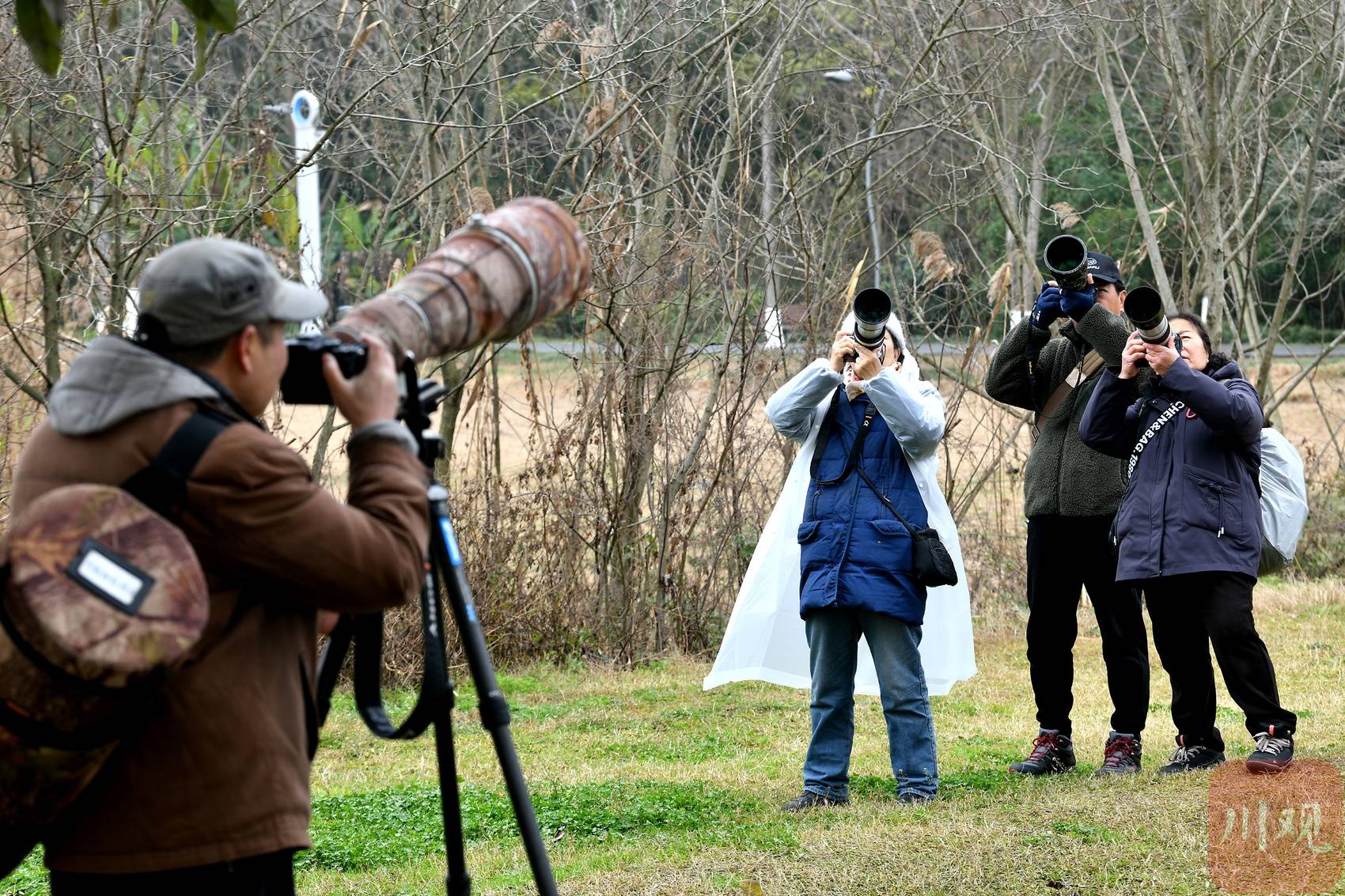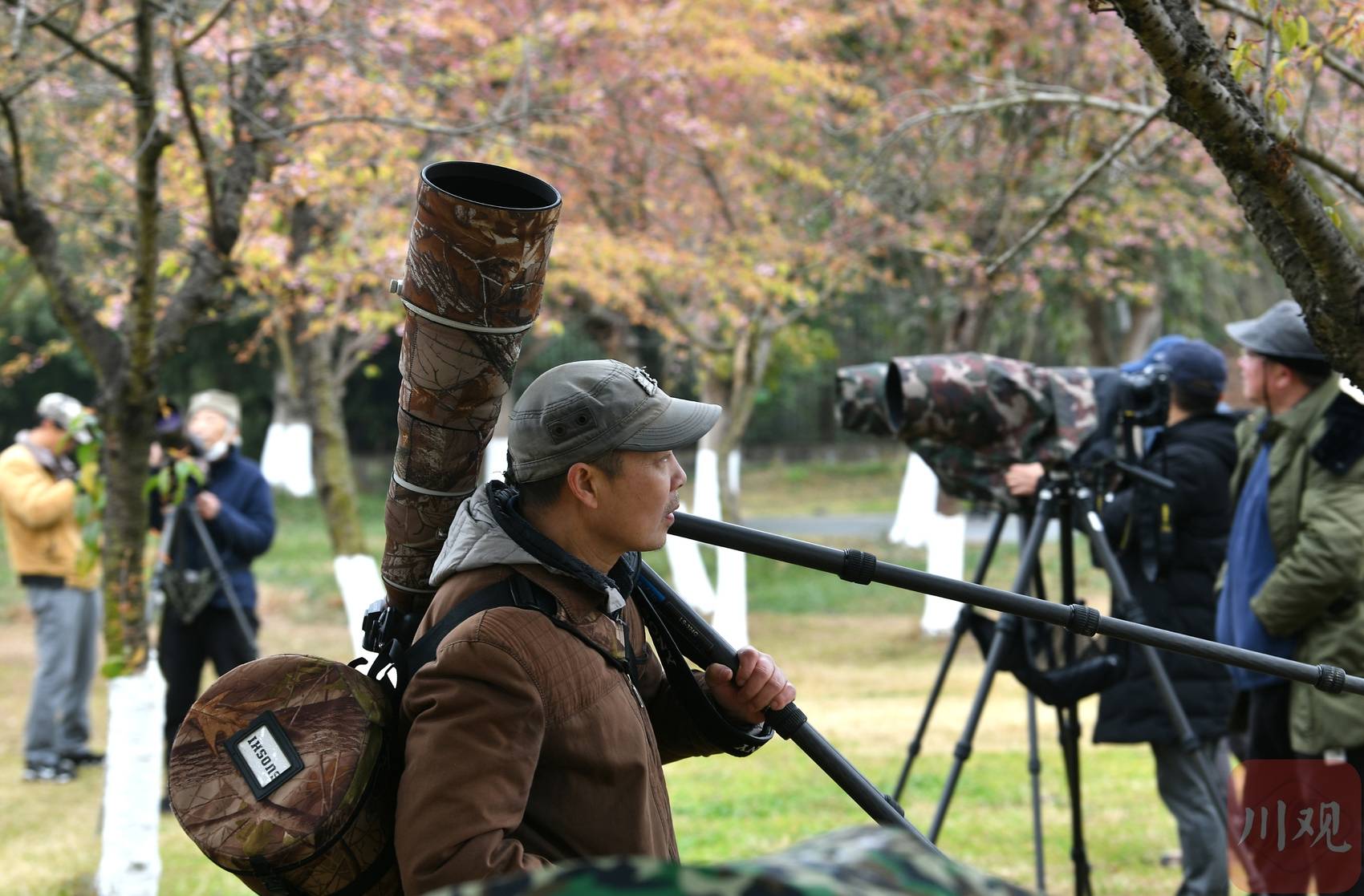 成都青龙湖边的樱花树下聚了很多持“炮”鸟友。