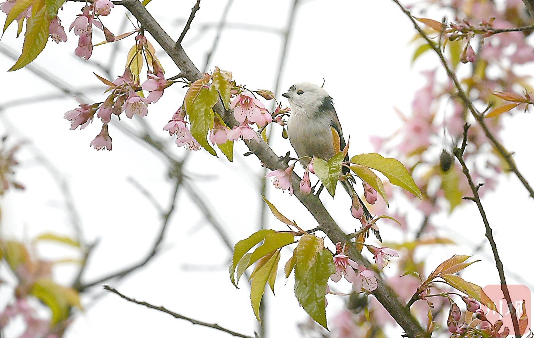 鸟友们持“炮”在樱花树下寻觅白长尾山雀。