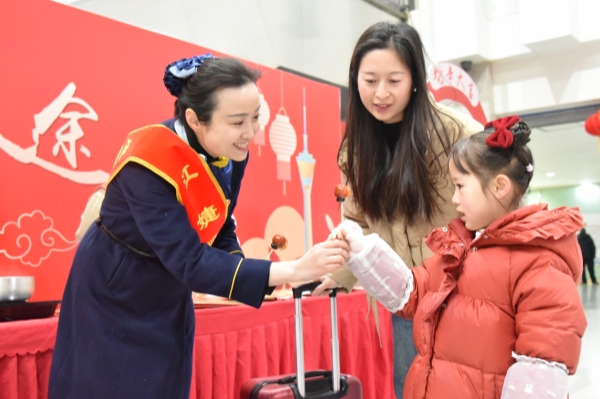 志愿者们以饱满的热情,身着“红马甲”、披上“红绶带”在候车大厅、接驳通道等暖心服务点,为旅客提供行李搬运、路线指引、文明劝导等贴心服务;携手成都市总工会推出就业咨询、健康义诊等一站式便民服务,精准解决旅客多样化需求;联合社区及交管部门开展“文明交通、绿色出行”主题宣传活动,通过发放手册、现场讲解等形式传播安全理念,并精心策划“暖心汤圆”“新春送福”等特色活动,以传统年味装点春运旅途,让往来旅客在返乡途中感受到“家”的温暖,共同营造温馨、有序的春运出行环境。