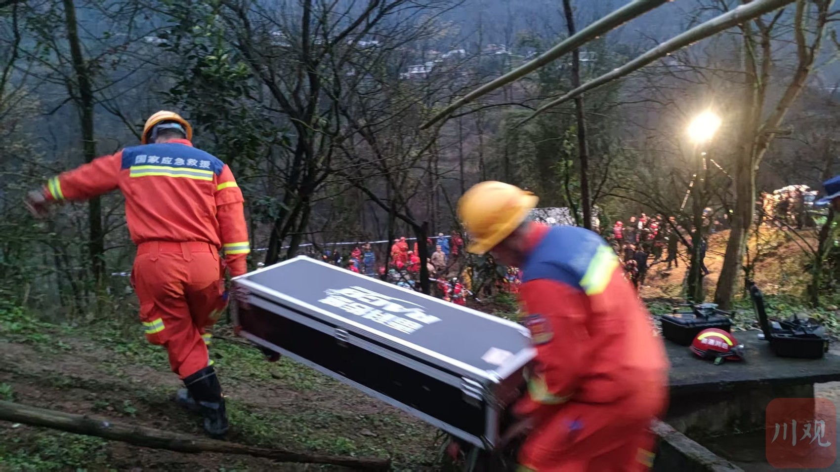 14时35分,川煤队到达救援现场,第一时间徒步深入受灾点,利用无人机、生命雷达探测等救援装备,进行全方位、地毯式搜寻;同时架设边坡雷达,加强现场安全监测管控,确保救援安全。