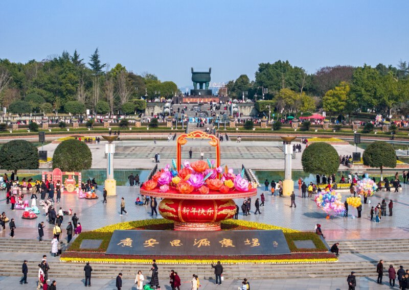 1月28日,广安思源广场装扮一新,市民游客感受新年的喜庆。(张国盛 摄)