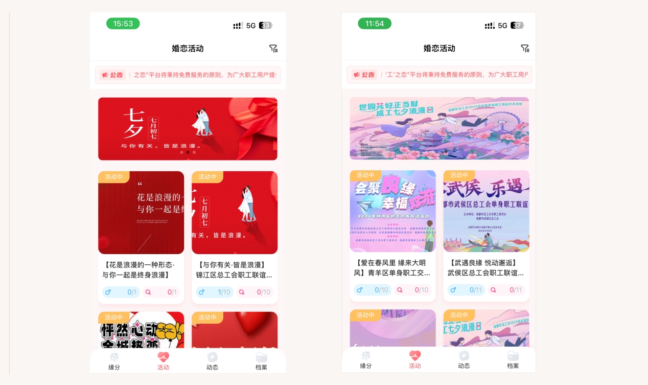 近日,成都市总工会正式上线创新型婚恋服务平台“成工之恋”。成都全市单身职工可通过关注微信公众号或登录职工普惠App,进入“成工之恋”平台完成注册。