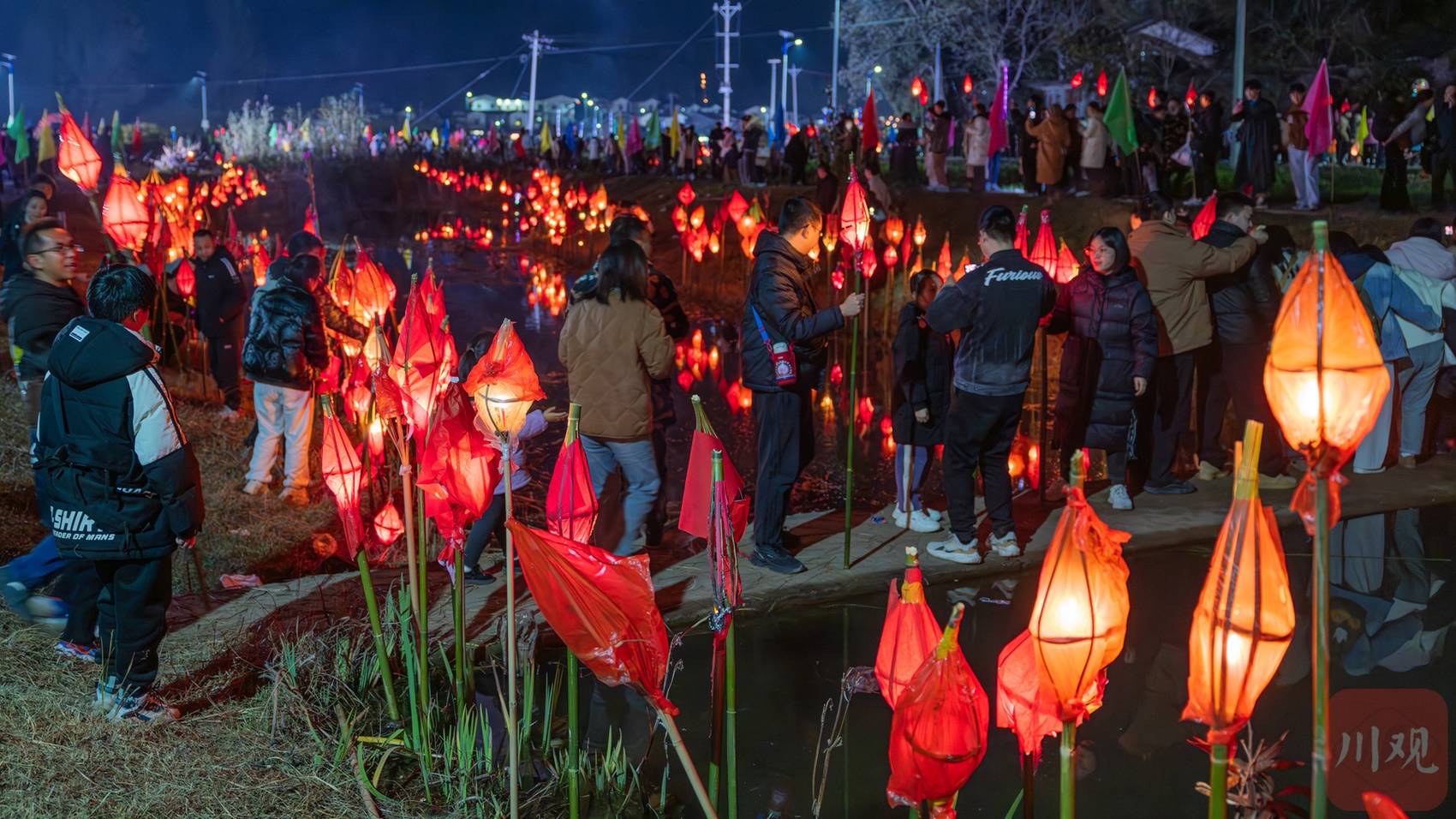 2月11日,万余市民和游客共聚遂宁市蓬溪县文井镇白鹤林村,参加一年一度在这里举行的“送蛴蟆”民俗文化活动。与此同时,南充多地也同样举行了规模盛大的“送蛴蟆” 祈福活动。大人小孩成群结队举着蛴蟆灯,唱着“送蛴蟆”歌谣,将“蛴蟆”插在田间地头送走,祈求新的一年,远离疾病、阖家幸福,五谷丰登、六畜兴旺。