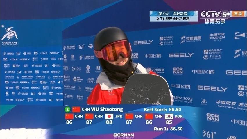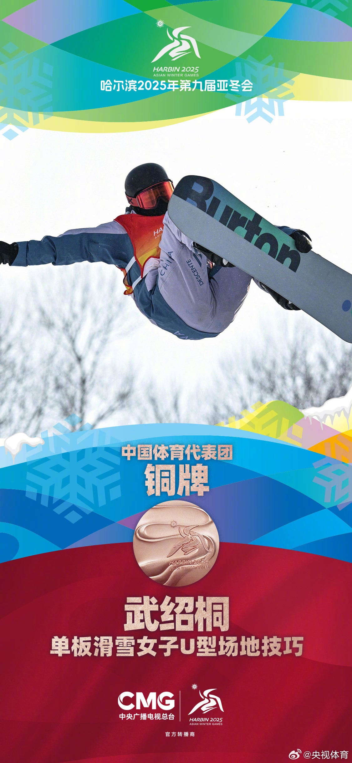 亚冬会官方宣布,受大风天气影响,单板滑雪U型场地技巧决赛取消。按照预赛成绩,四川选手武绍桐获得单板滑雪女子U型场地技巧铜牌。