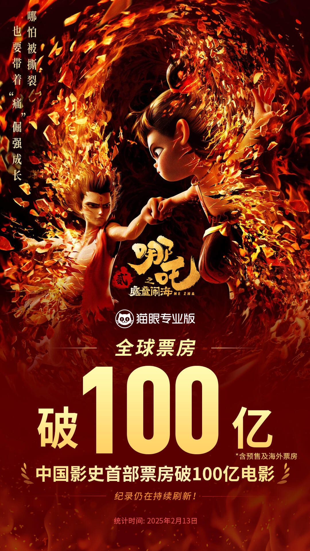 “川造哪吒”一路高歌猛进,中国动漫开启影史新纪元。截至2月13日19时,国产动画电影《哪吒之魔童闹海》(以下简称《哪吒2》)累计票房(含预售及海外票房)突破100亿元大关,稳居中国影史票房榜首,并跻身全球影史票房前17名、动画电影全球票房前3位,成为全球首个达成此成就的非好莱坞影片。