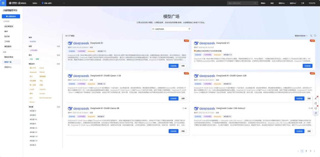 同时,四川移动3AZ智算云池兼容1.5B、7B、14B、32B等多种高效蒸馏版模型,形成了丰富的模型生态,可全版本灵活调用。并针对DeepSeek R1量身定制专属算力方案,为互联网企业创新、高校科研提供高性价比算力支持。