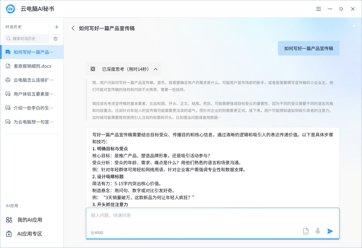 在日常办公场景中,智能化需求日益增长。四川移动深度融合DeepSeek技术,全面升级移动云电脑、移动云盘,为客户带来前所未有的智能办公体验。