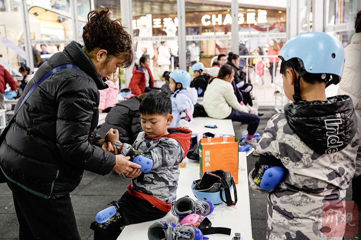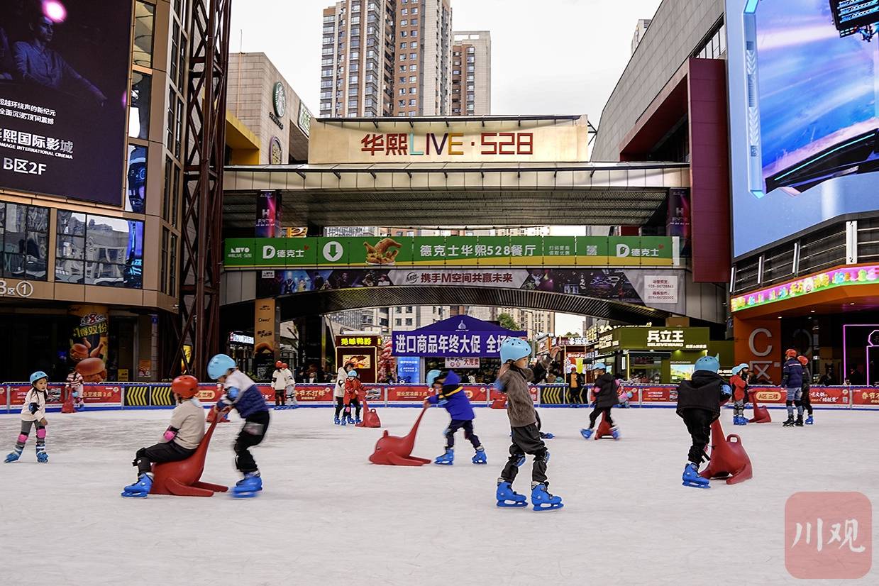 成都市锦江区,冰上运动吸引了众多青少年和儿童踊跃参与。