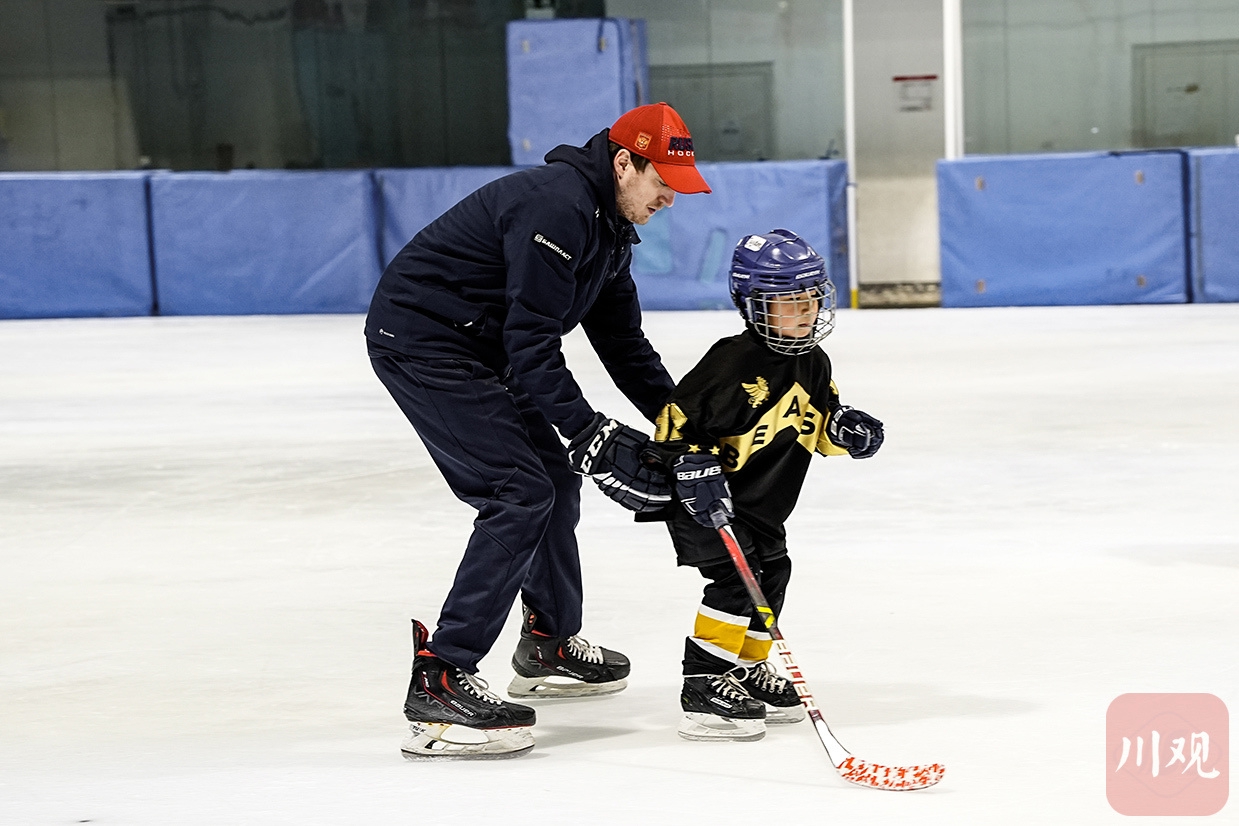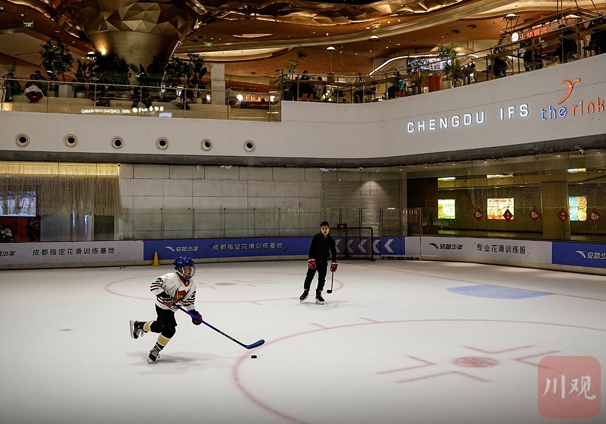 在成都市锦江区,冰球运动成为了青少年喜爱的冰雪项目之一。