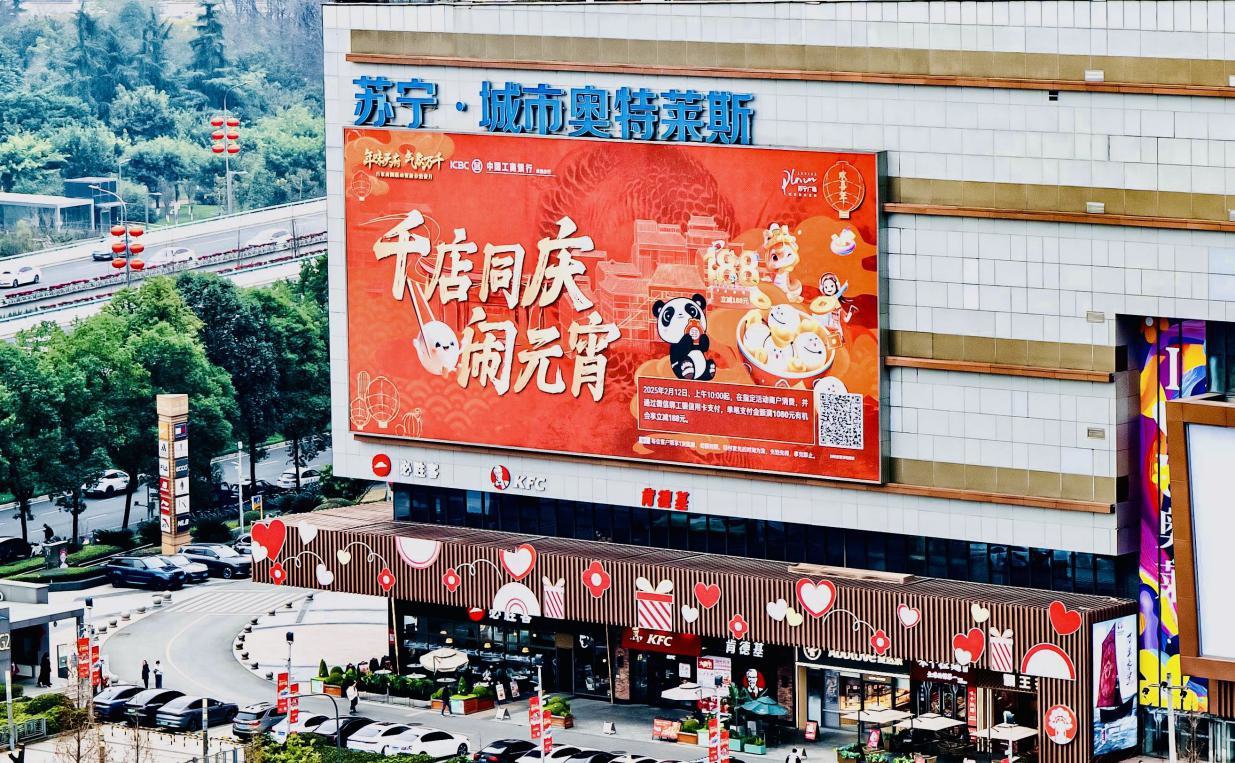 工行元宵节活动宣传登上了苏宁城市奥特莱斯户外大屏幕。