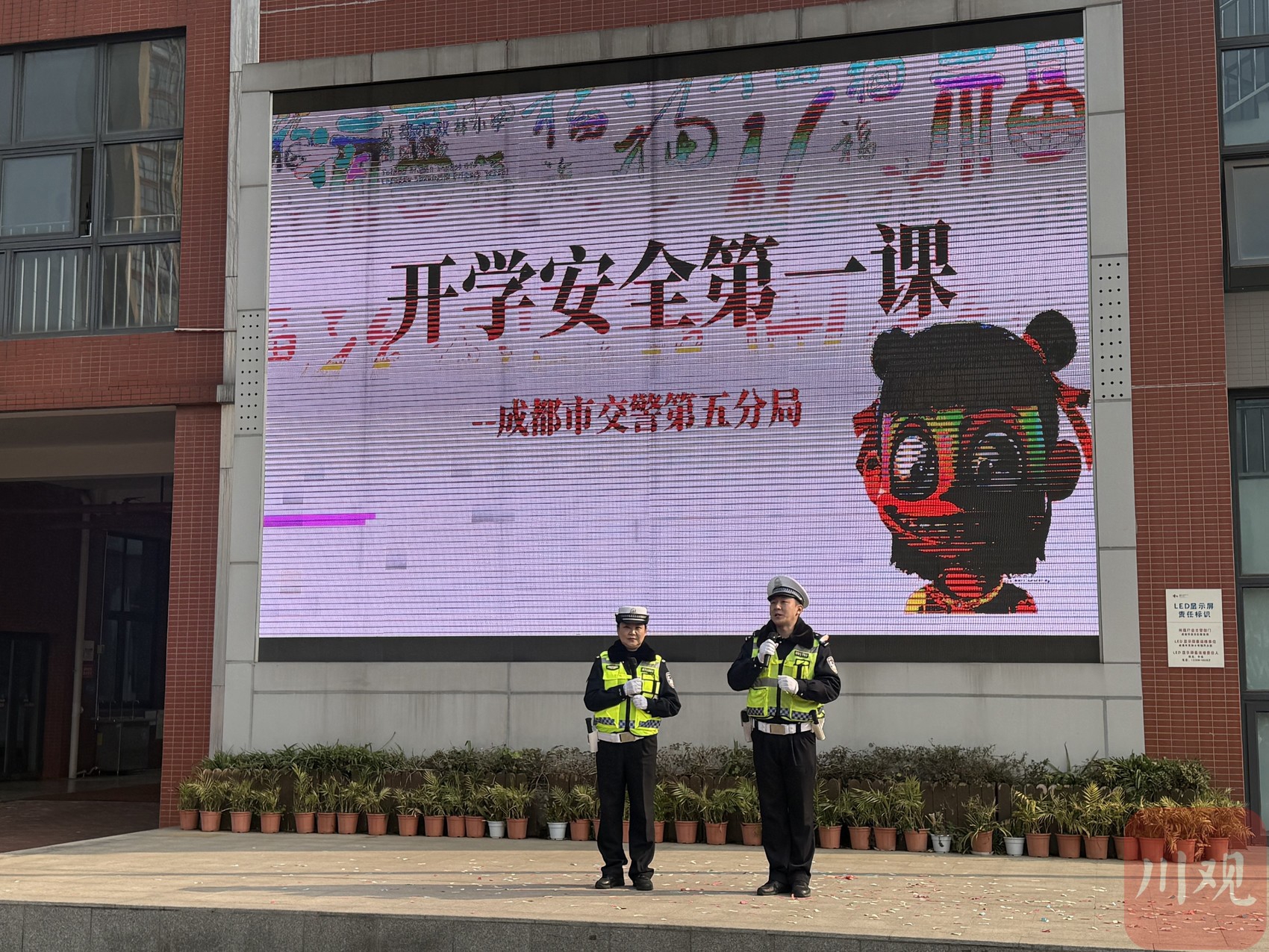 开学前夕,成都交警二分局民警还对辖区校园周边道路安全隐患开展全面排查,优化交通标志标线和交通设施。开学后,在辖区各校门口增设“护学岗”,并联动学校、家长志愿者组建“护学联盟”,形成共治合力,确保校园周边道路畅通有序。