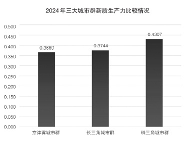 《报告》指出,在新质生产力排名前100的城市中,三大城市群共有26个城市脱颖而出,其中长三角城市群占据了15席,展现出较强的整体实力。珠三角城市群平均城市新质生产力水平高于京津冀和长三角城市群,显示出其在推动新质生产力发展方面的领先地位。同时,在排名前20的城市中,三大城市群均有城市入围,并呈现出不同的集聚特征,这体现了各城市群在新质生产力培育上的多样性和竞争力。