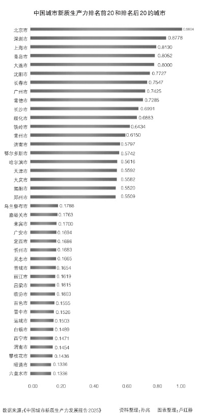 首都科技发展战略研究院课题组日前发布《中国城市新质生产力发展报告2025》(以下简称《报告》)。《报告》重点剖析了新质生产力对城市的影响因素及产生的经济社会效益,验证了不同要素集聚水平对新质生产力的影响。同时,《报告》还探讨了新质生产力与城市韧性之间的相关性,为城市在新时代背景下提升综合竞争力提供了科学依据。