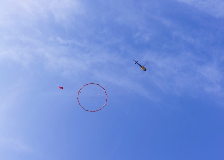 航空大地电磁探测系统在新疆和田地区进行飞行探测作业。