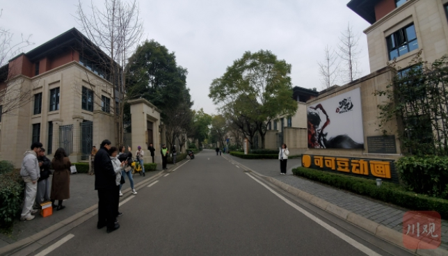 位于天府长岛数字文创园的可可豆动画公司门前,成为影迷网红打卡点
